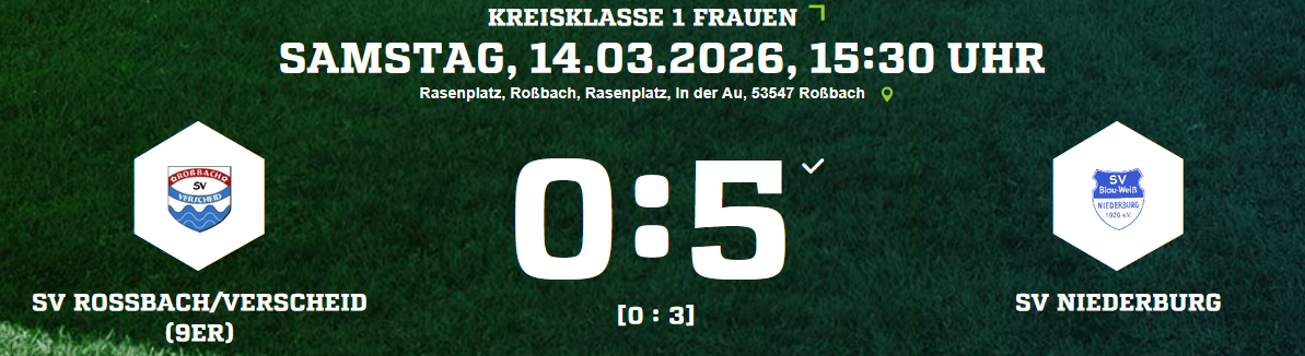 Am Samstag, den 14.03.2026 stand für die Damen des SV Niederburg die nächste Auswärtsreise in den Westerwald an. Gegner diesmal, die Damen des SV Roßbach/Verscheid. Im Hinspiel hatten die Niederburgerinnen diese mit 7:0 nachhause geschickt. Somit war die Aufgabe klar vorgegeben und die 3 Punkte sollten mitgenommen werden. Dennoch waren die schlechten Platzverhältnisse die erste...Read More