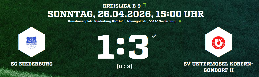 SG Niederburg/Biebernheim/Damscheid – SV Untermosel Kobern-Gondorf 1:3 (0:3)