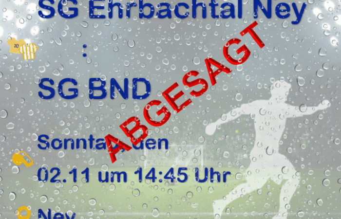 Das für diesen Sonntag angesetzte Spiel zwischen der SG Ehrbachtal Ney und der SG BND...