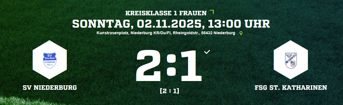 Am Sonntag, den 02.11.2025 stand für die Damen des SV Niederburg das nächste Heimspiel an. Der Gegner diesmal waren die Damen der FSG St. Katharinen, die als Vorletzter der Tabelle als Außenseiter in die Partie gingen. Das Niederburg als Tabellenzweiter als klarer Favorit galt, war ebenso klar, genau wie das Ziel des Spiels, die drei...Read More