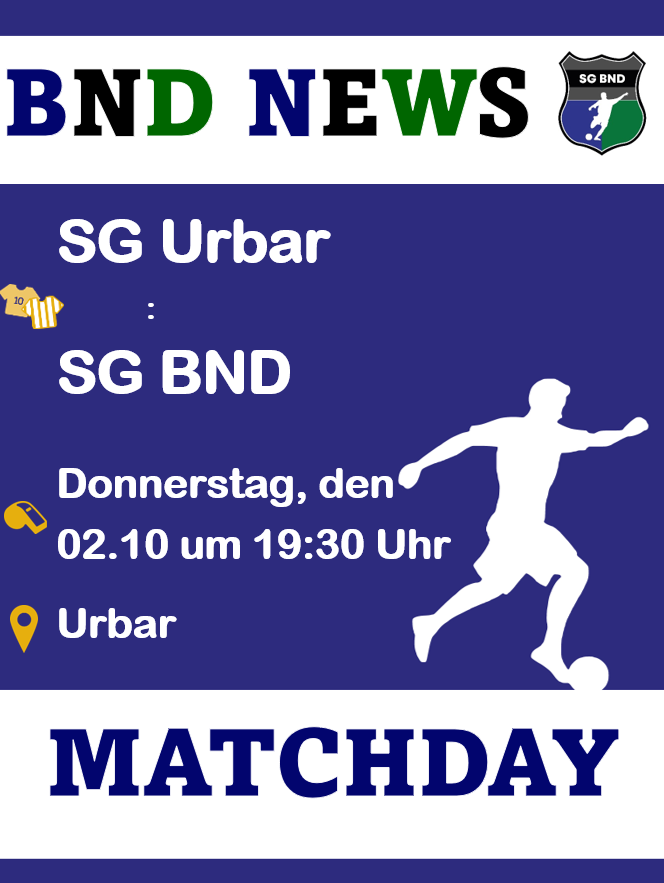 SG Urbar – SG BND 5:1 (2:0) Die Vorzeichen standen bereits vor dem Spiel nicht gut, denn Trainer Patric Muders musste kurzfristig auf die beiden Leistungsträger Christoph und Jan Schink verzichten. Entsprechend defensiv startete die SG BND in die Partie und versuchte die Räume für die Heimmannschaft eng zu machen. Dies gelang aber nur eine...Read More